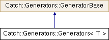Inheritance diagram for Catch::Generators::Generators< T >:Public Types | |
