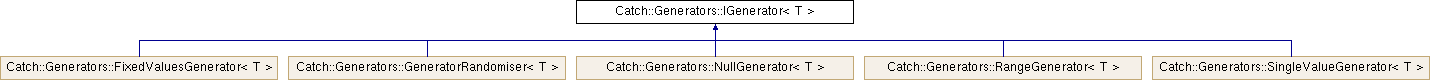 Inheritance diagram for Catch::Generators::IGenerator< T >: