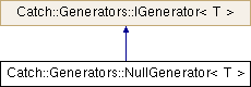 Inheritance diagram for Catch::Generators::NullGenerator< T >: