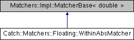 Inheritance diagram for Catch::Matchers::Floating::WithinAbsMatcher:Public Member Functions | |