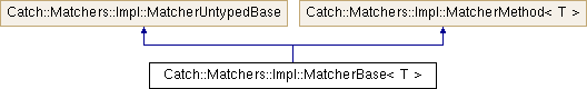 Inheritance diagram for Catch::Matchers::Impl::MatcherBase< T >:Public Member Functions | |